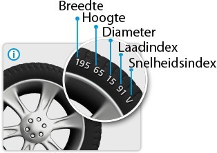 bepaalde spanning. Ook de wieldiameter, bandbreedte, constructie, loadindex (draagvermogen) en